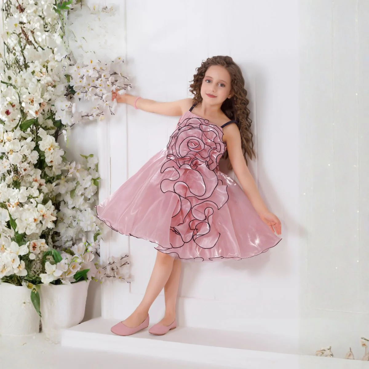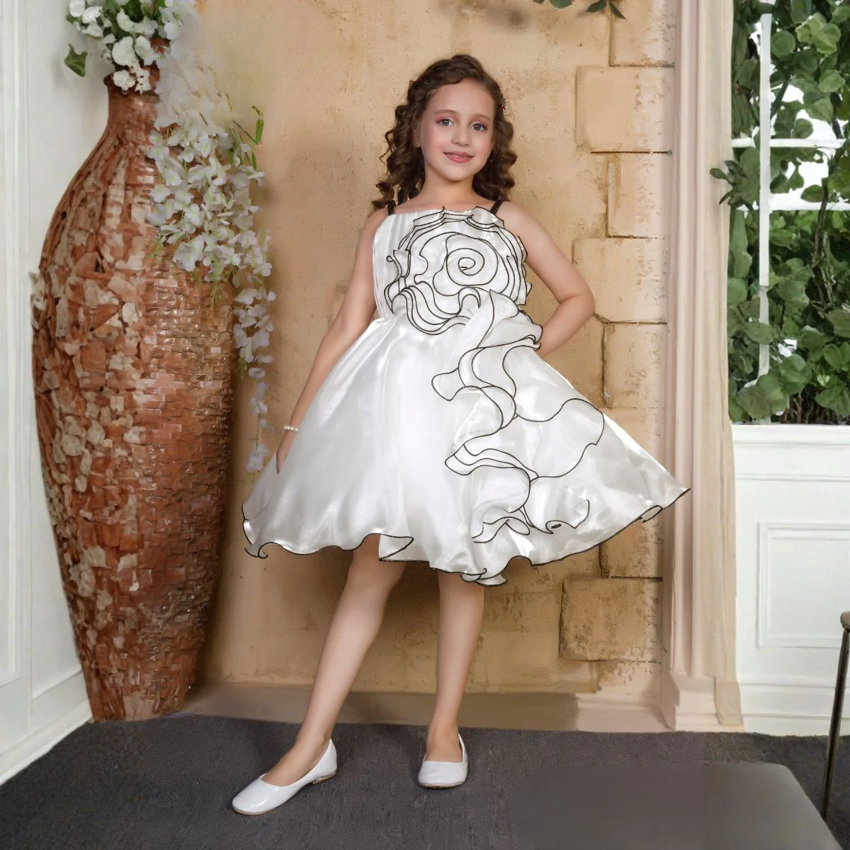 Bring elegance to your little girls style with this peach and white rose frock for girls featuring a stunning 3D floral design and layered satin flare. The soft sheen fabric, spaghetti straps, and detailed rose pattern make it ideal for birthdays, parties, and festive occasions.